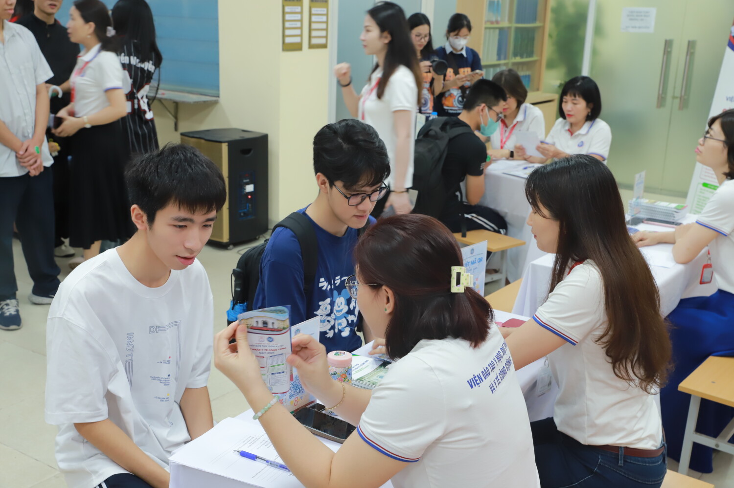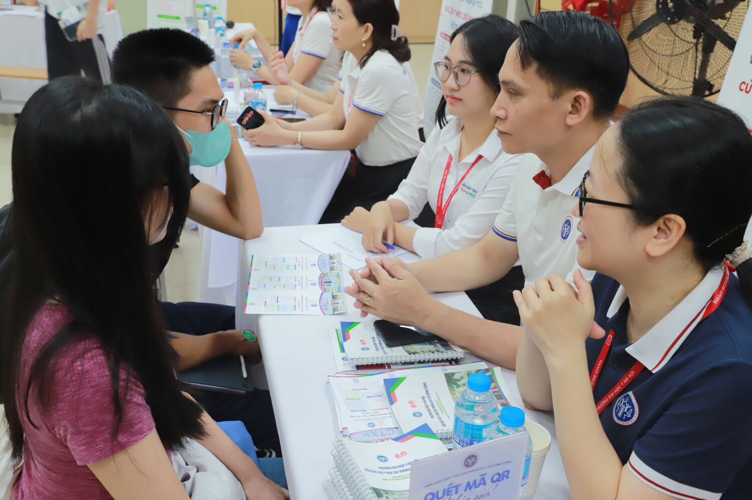 Trong hành trình trải nghiệm, khu tư vấn của Viện Đào tạo Y học dự phòng và Y tế công cộng đã thu hút sự quan tâm đặc biệt. Với sự đồng hành của đại diện 5 ngành đào tạo, học sinh được giải đáp trực tiếp về điều kiện tuyển sinh, định hướng học tập và cơ hội nghề nghiệp: