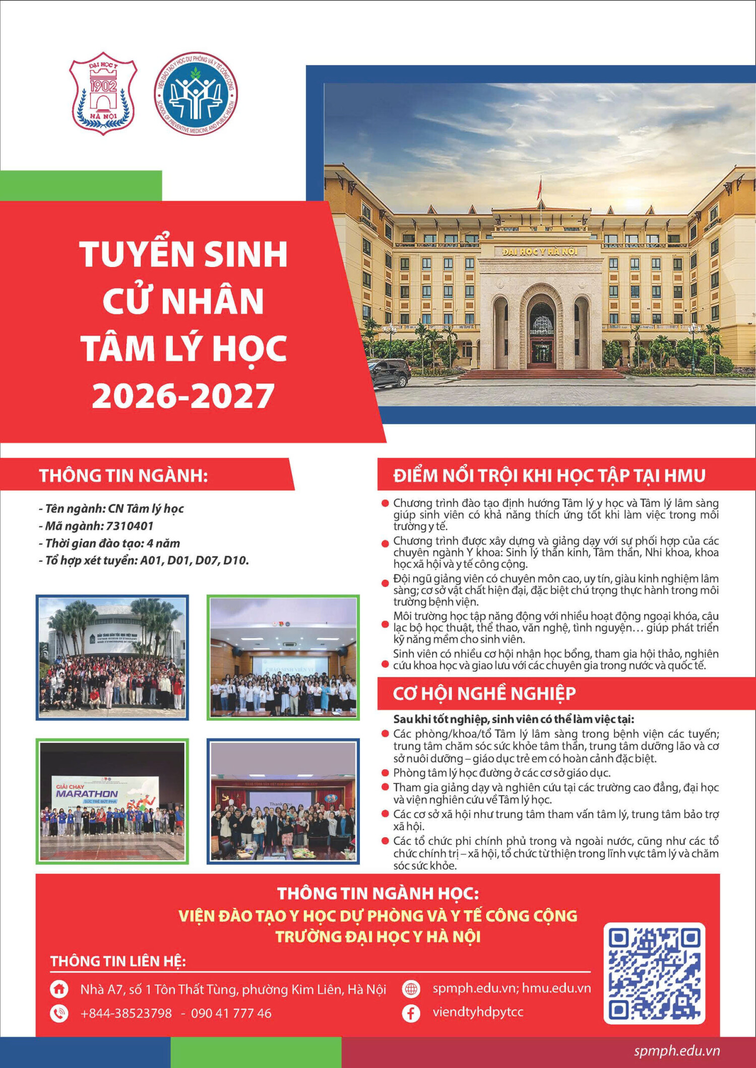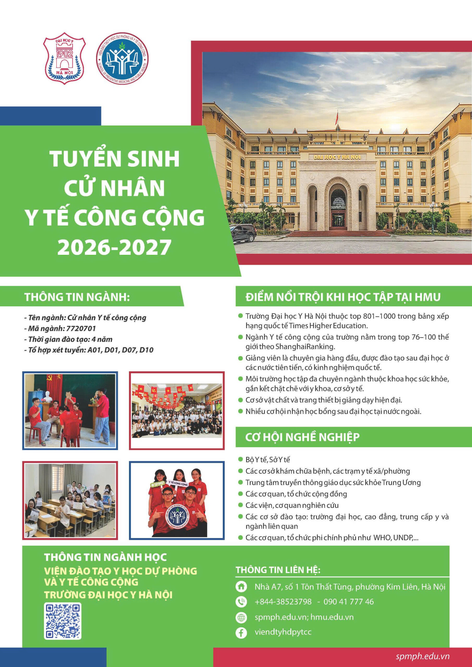 TUYỂN SINH ĐẠI HỌC 2026 – Viện Đào tạo YHDP&YTCC, Trường Đại Học Y Hà Nội