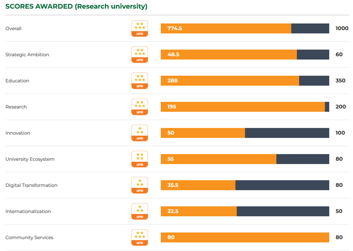 Để có được báo cáo tổng kết đánh giá ngoài, bên cạnh việc nghiên cứu số lượng lớn hồ sơ, minh chứng Nhà trường cung cấp, đoàn đã thực hiên các cuộc phỏng vấn cán bộ quản lý chuyên môn, giảng viên, cán bộ hỗ trợ và đoàn thể, người học, cựu người học và các nhà tuyển dụng. Đoàn cũng đã thực hiện thu thập thông tin từ 693 cựu người học, 245 phiếu đánh giá độc lập và 237 lượt ý kiến của các đổi tượng phỏng vấn, khảo sát điều kiện cơ sở vật chất phục vụ công tác đào tạo, các cơ sở thực hành, các bệnh viện thực hành. Số liệu và kết quả của đoàn chuyên gia cũng đã được hệ thống xếp hạng đối sánh UPM (University Performance Metrics) phân tích và đối sánh. Theo đó, Trường Đại học Y Hà Nội được đánh giá đạt chuẩn 5 sao theo định hướng nghiên cứu của UPM, nằm trong nhóm với các trường đại học nghiên cứu của Việt Nam và châu Á như: Đại học Bách khoa Hà Nội, Trường Đại học Khoa học Tự nhiên, Trường Đại học Công nghệ - Đại học quốc gia Hà Nội, Trường đại học Kasetsaert, Đại học Mae Fah Luang (Thái Lan), National Kaohsiung Normal University, Đại học Taipei (Đài Loan), khẳng định chiến lược tiếp cận chuẩn mực châu Á trong tầm nhìn của trường. Được biết bảng xếp hạng đối sánh UPM đã có hơn 100 cơ sở giáo dục đại học và chương trình đào tạo của 8 quốc gia tham gia (Hoa Kỳ, Đài Loan, Brunei, Myanmar, Indonesia, Philippines, Thailand và Việt Nam).