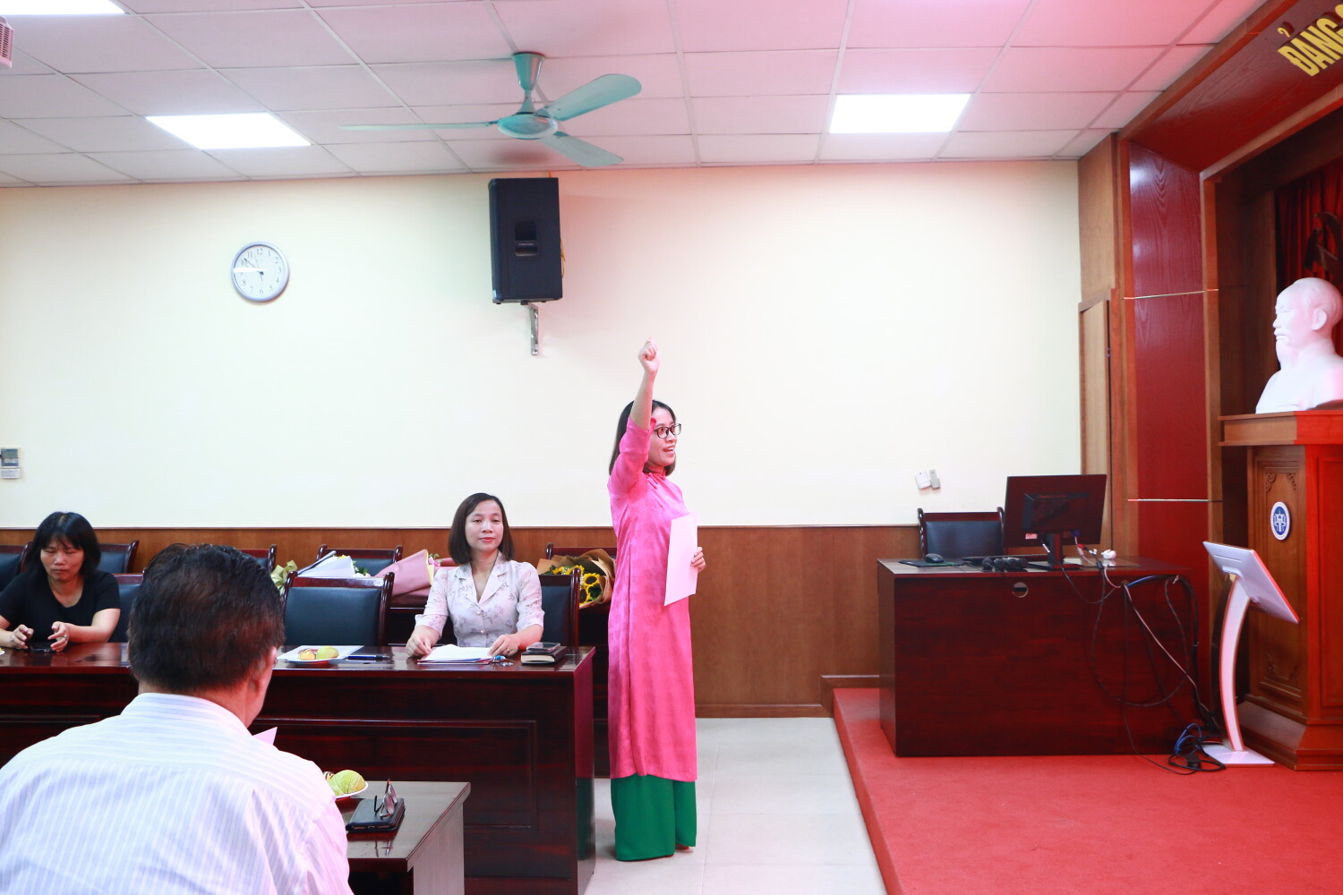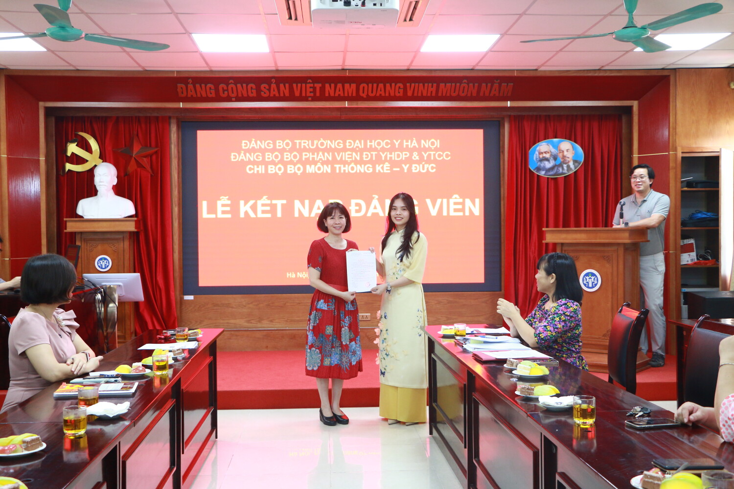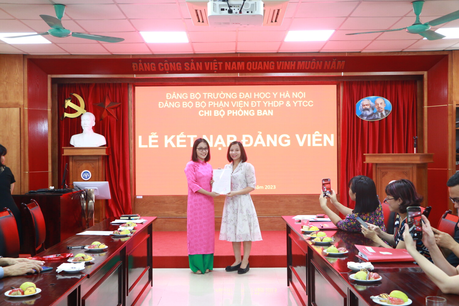 Trong không khí trang nghiêm khi nhận quyết định từ Bí thư Chi bộ, dưới cờ Đảng, cờ Tổ quốc và chân dung Chủ tịch Hồ Chí Minh cùng sự chứng kiến của Chi bộ, đồng chí Nguyễn Thuý Hiền & Nguyễn Hà Thu đã tuyên thệ lời thề của người đảng viên Đảng Cộng sản Việt Nam, hứa sẽ tiếp tục phấn đấu để luôn xứng đáng là người đảng viên gương mẫu, hoàn thành tốt mọi nhiệm vụ dược giao, góp phần xây dựng Chi bộ ngày càng vững mạnh.