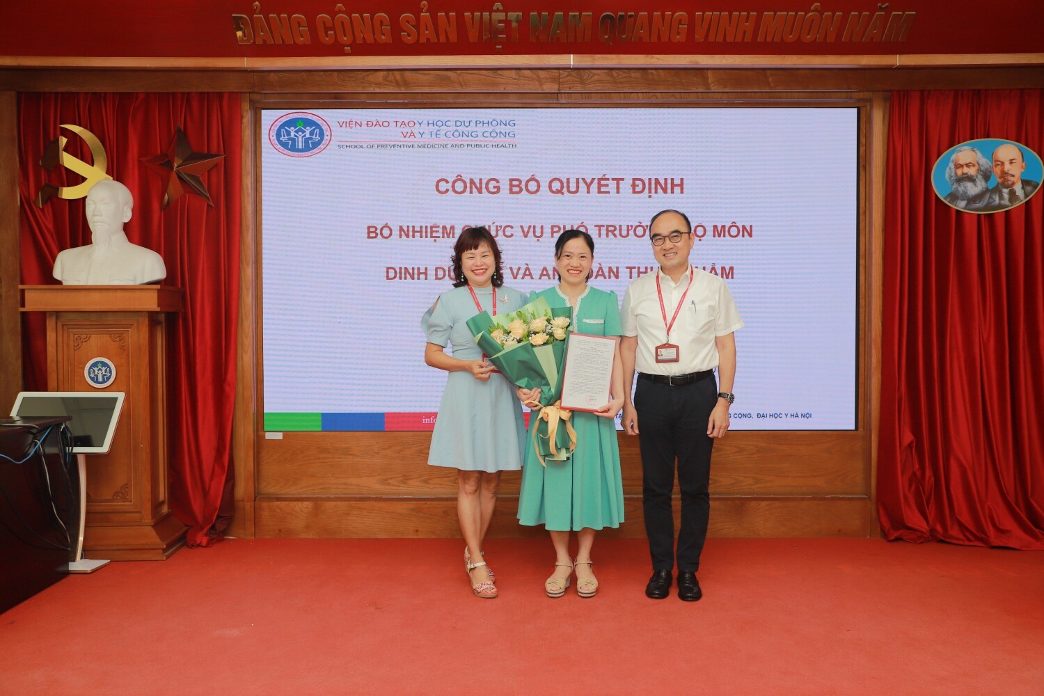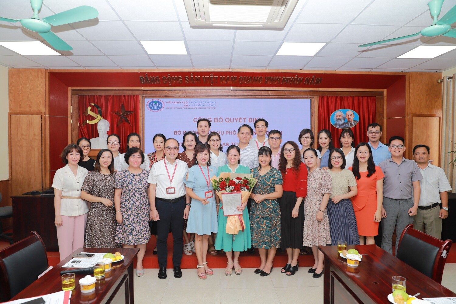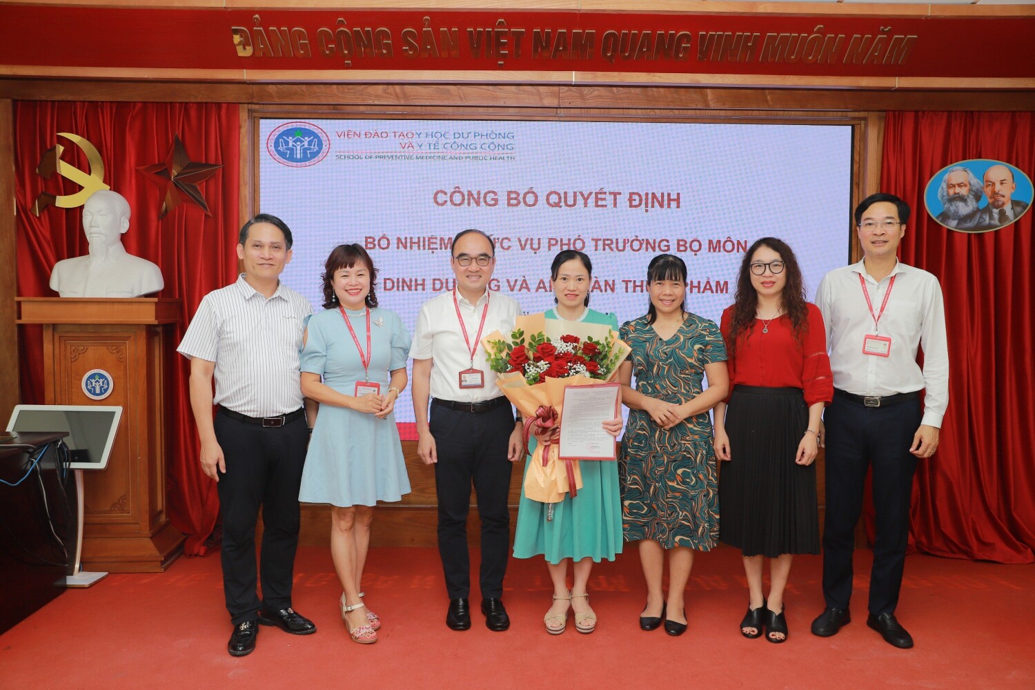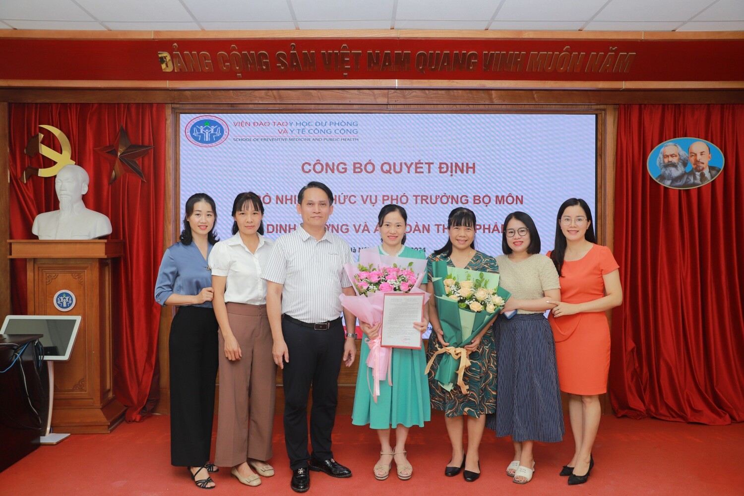 Chiều ngày 01 tháng 8 năm 2024, thực hiện công tác kiện toàn và hoàn thiện bộ máy lãnh đạo, quản lý các đơn vị, Viện Đào tạo Y học dự phòng và Y tế công công đã tổ chức: Công bố Quyết định bổ nhiệm chức vụ Phó trưởng Bộ môn Dinh dưỡng và An toàn thực phẩm cho Tiến sĩ Nguyễn Thị Thùy Linh.