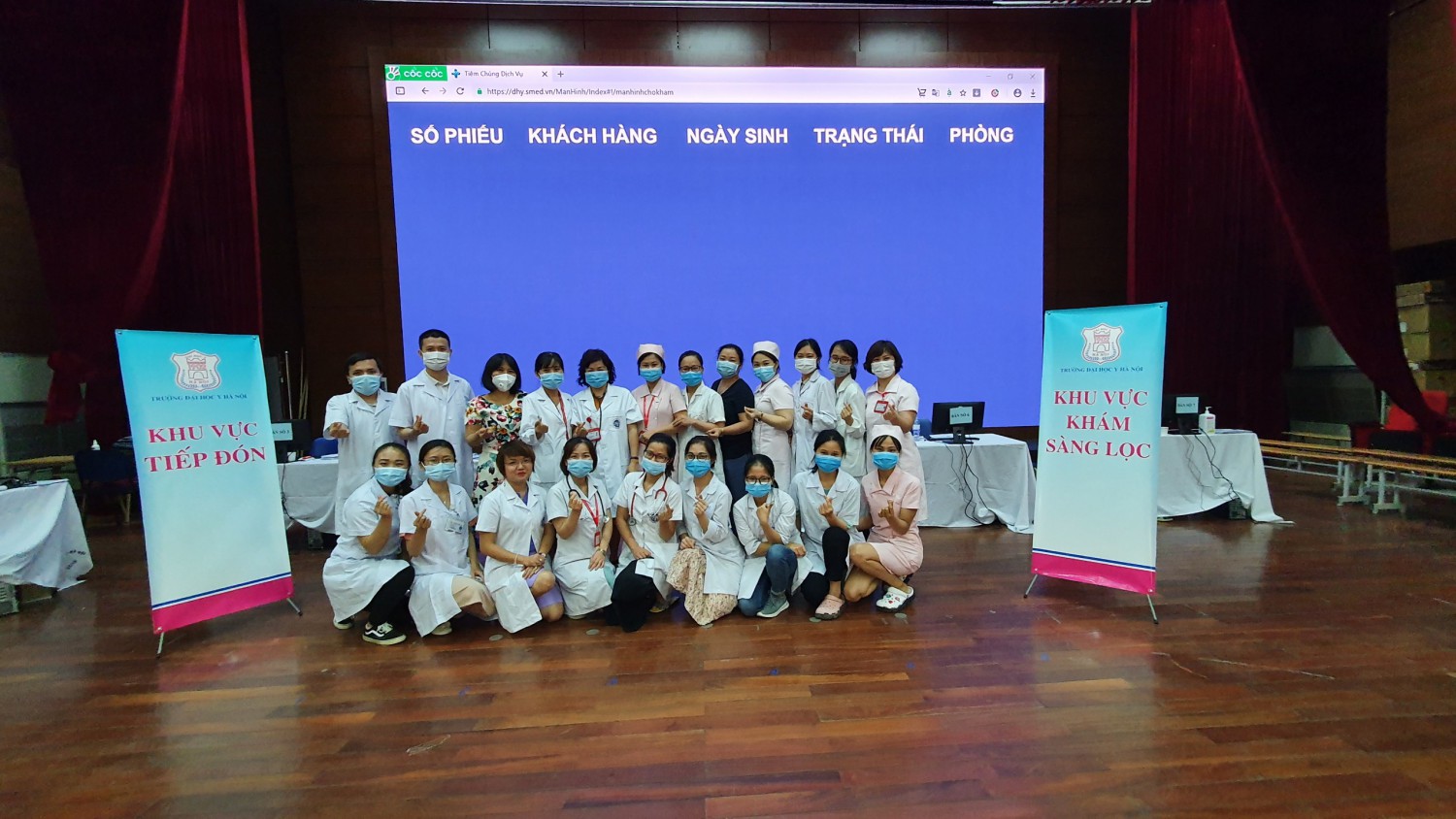 Mỗi ngày tổ tiêm chủng Đại học Y Hà Nội tổ chức tiêm từ 2500-2700 mũi tiêm tại 3 điểm tiêm tại hội trường lớn Đại học Y Hà Nội, Bệnh viện Đại học Y Hà Nội và điểm tiêm chủng số 35 Lê Văn Thiêm.