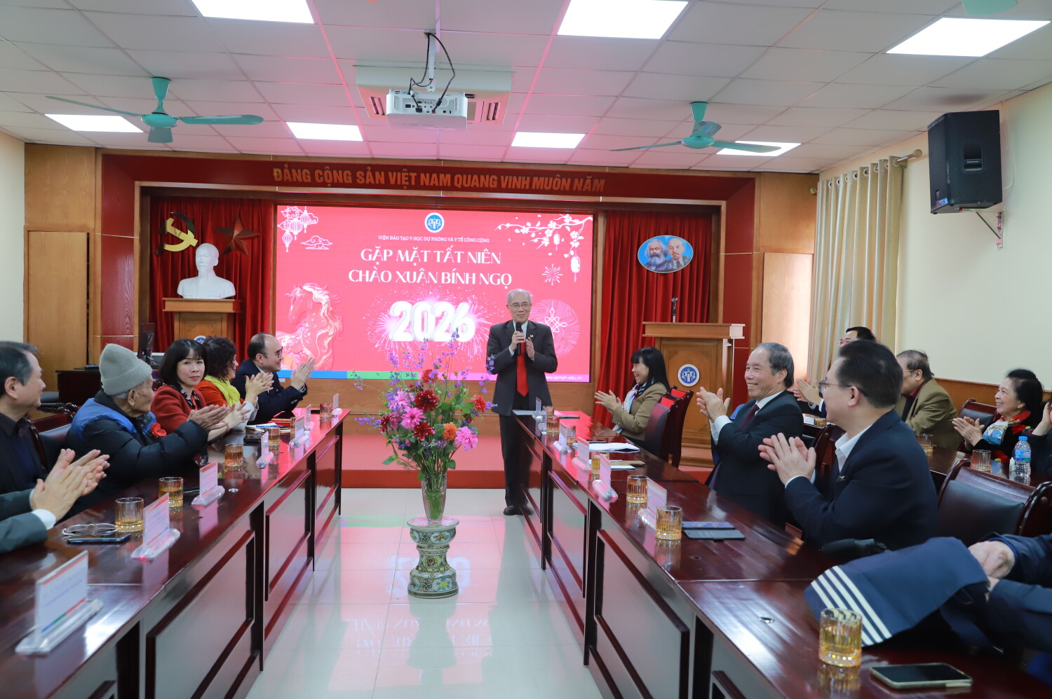 🌸Sáng ngày 05/02/2026, Viện Đào tạo Y học dự phòng và Y tế công cộng đã tổ chức chương trình Gặp mặt Tất niên – Chào Xuân Bính Ngọ 2026 dành cho các Thầy/Cô Cựu giáo chức cùng toàn thể viên chức, người lao động của Viện, trong không khí ấm áp trước thềm năm mới.