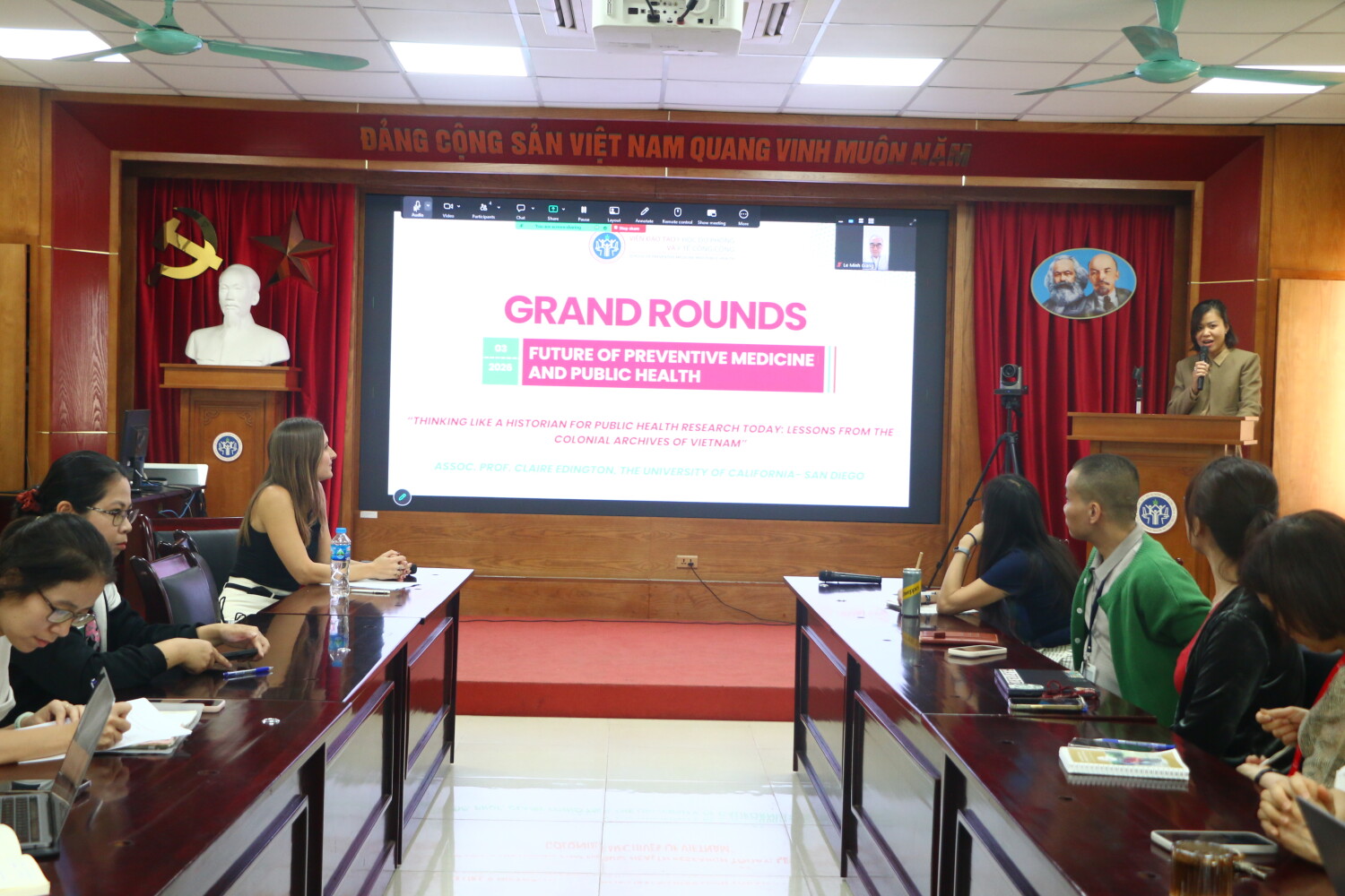 Diễn giả khách mời là Phó Giáo sư Claire Edington (Đại học California, San Diego), chuyên gia về Lịch sử với bài trình bày “Thinking like a historian for public health research today: Lessons from the colonial archives of Vietnam”.