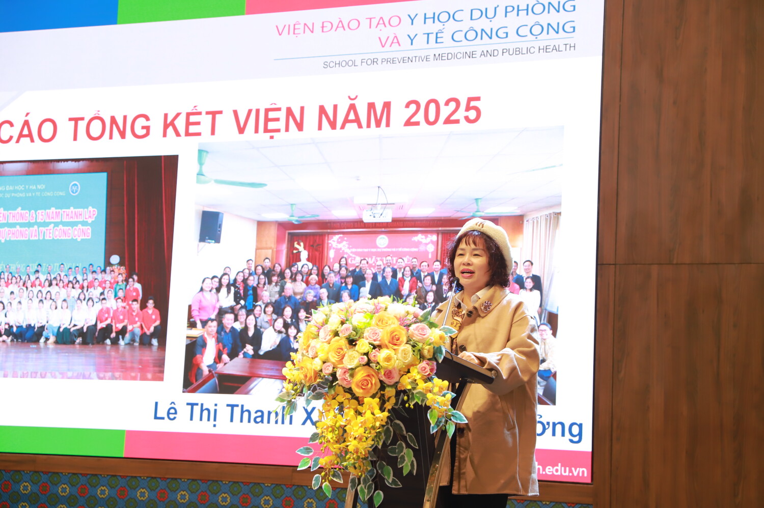 Trình bày báo cáo tổng kết năm 2025, PGS.TS. Lê Thị Thanh Xuân – Phó Viện trưởng nhấn mạnh 05 kết quả nổi bật của Viện: