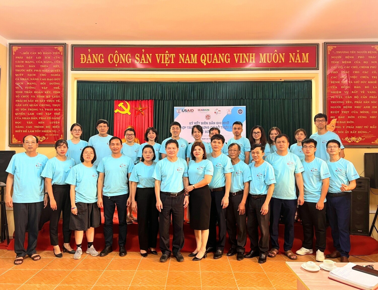 8h sáng ngày 22/6/2023, lãnh đạo Trường Đại học Y Hà Nội, Viện Đào tạo YHDP & YTCC, cán bộ các Phòng/Ban liên quan cùng với 17 giảng viên và 17 sinh viên tổ trưởng, đã xuống làm việc tại Trung tâm Y tế huyện Bình Lục.
