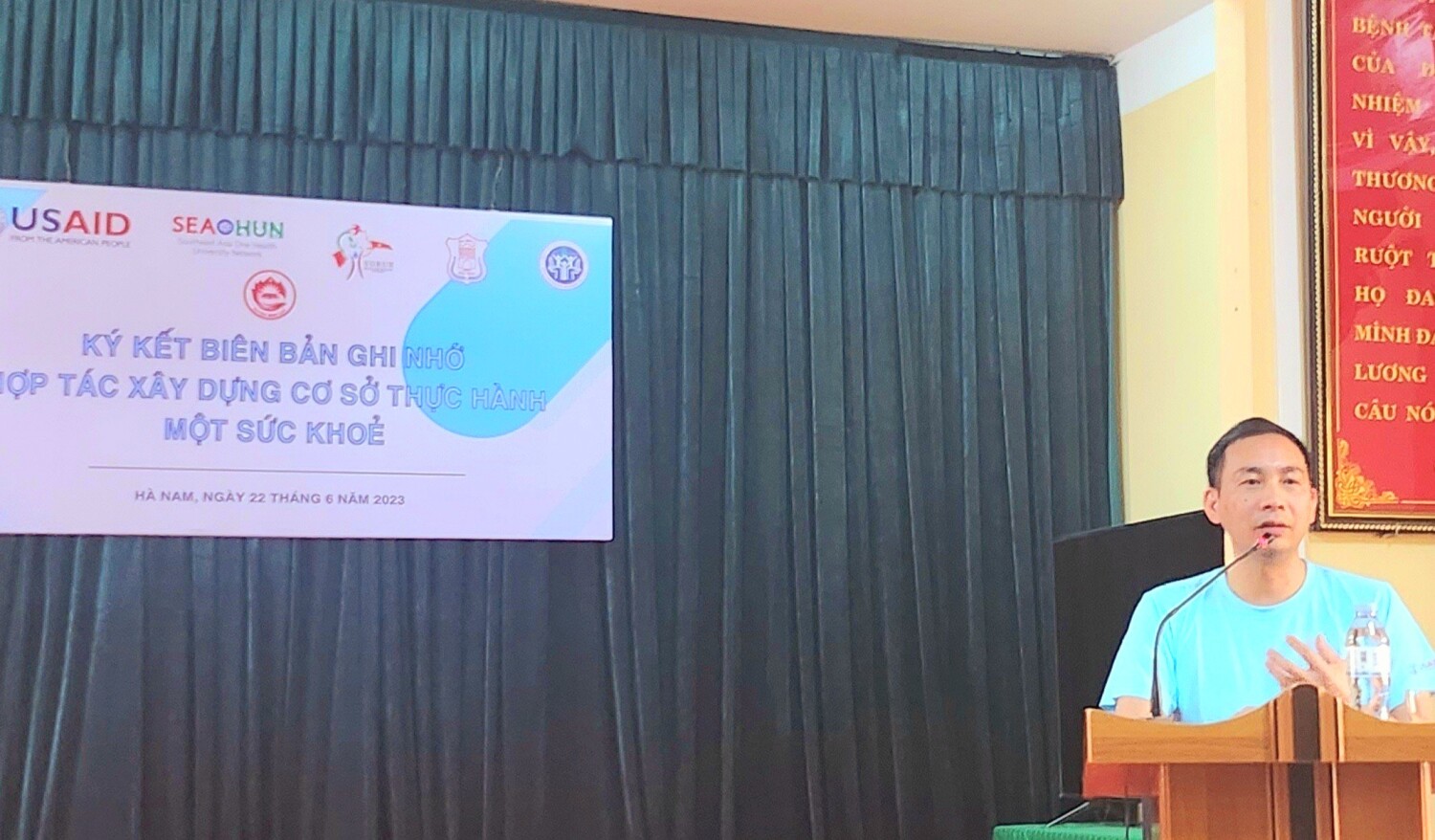 9h30 cùng ngày, cũng đã diễn ra lễ ký kết biên bản ghi nhớ và gắn biển cơ sở thực địa Một sức khỏe tại Bình Lục, Hà Nam. Buổi làm việc đánh dấu một bước quan trọng trong việc phát triển và nâng cao chất lượng giảng dạy, học tập cũng như thực hành cộng đồng cho sinh viên và học viên của trường Đại học Y Hà Nội. Cơ sở thực địa Một sức khỏe tại huyện Bình Lục sẽ trở thành một mô hình thành công và một địa điểm tốt để nghiên cứu, đào tạo và chia sẻ kiến thức về Một sức khỏe, qua đó nhằm nâng cao hiệu quả dạy và học thực tế cộng đồng, Một sức khỏe dựa trên tình huống thực tế.