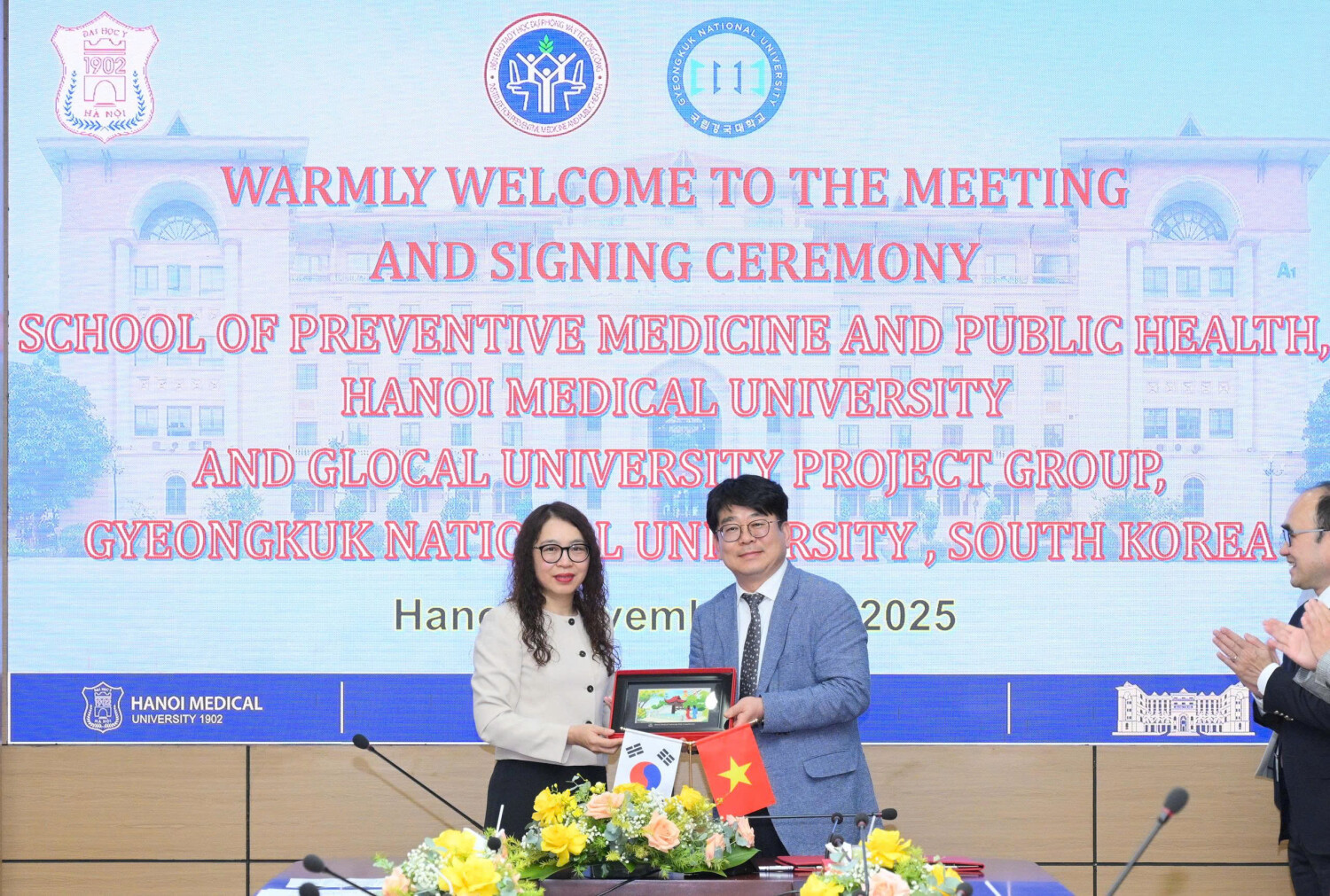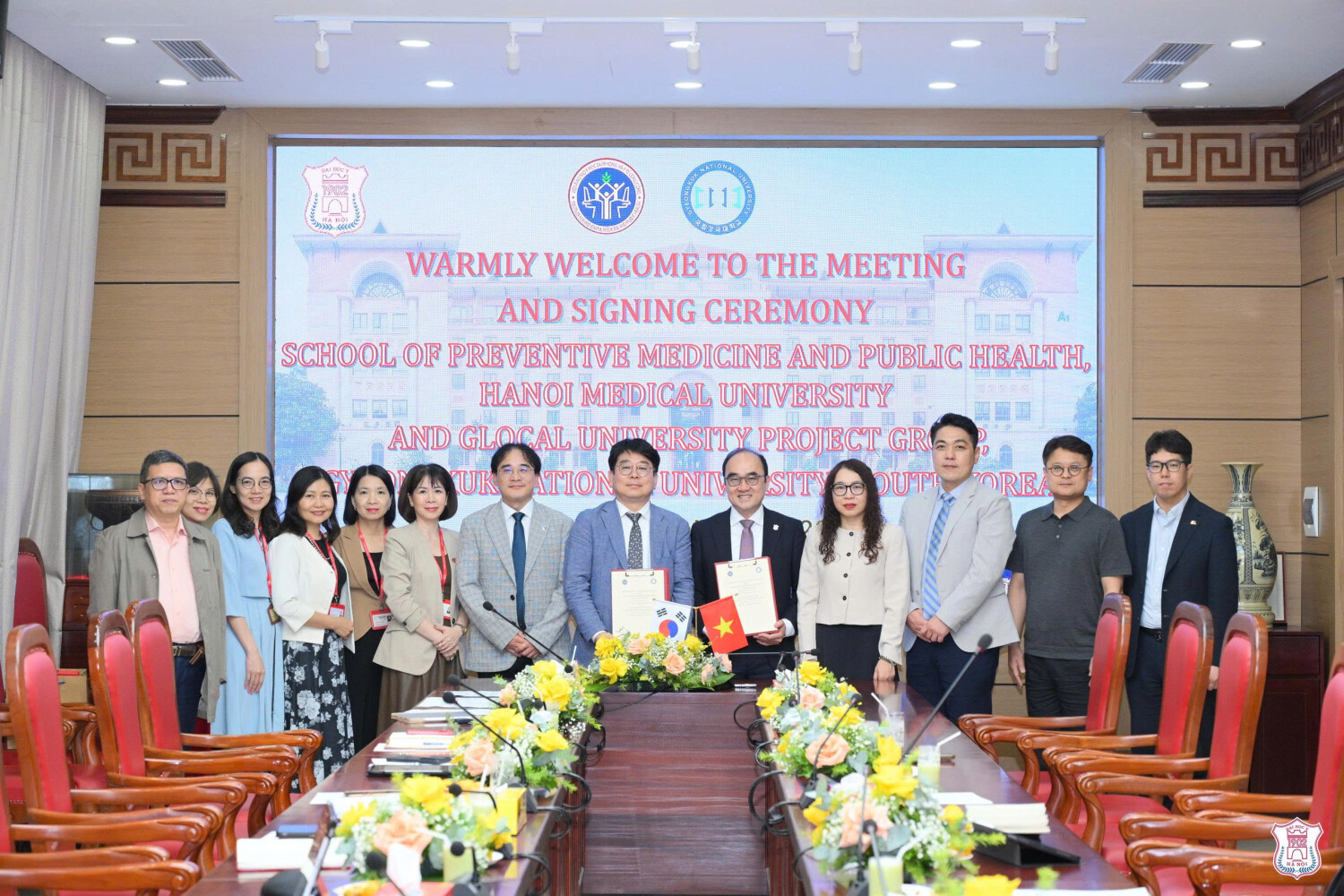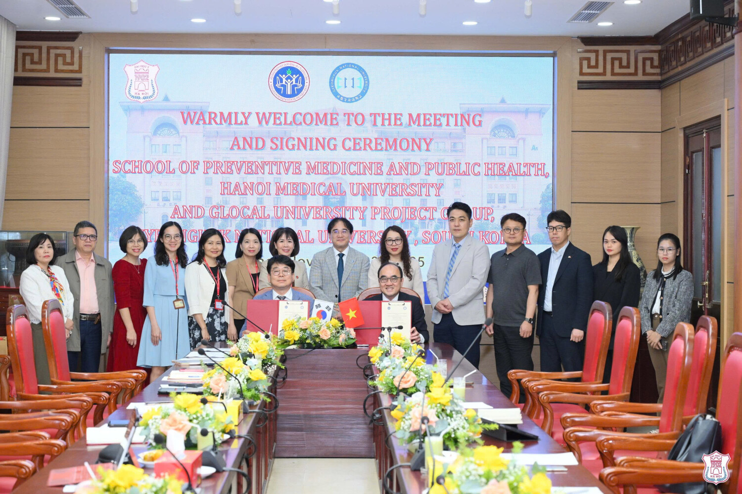 Lễ ký kết Biên bản Thỏa thuận Hợp tác giữa Viện Đào tạo YHDP và YTCC, Trường Đại học Y Hà Nội và Nhóm dự án Glocal University – Đại học Quốc gia Gyeongkuk, Hàn Quốc đánh dấu bước tiến quan trọng trong mở rộng hợp tác quốc tế của Viện và Nhà trường, góp phần nâng cao chất lượng đào tạo, nghiên cứu và hội nhập quốc tế vì sức khỏe cộng đồng.