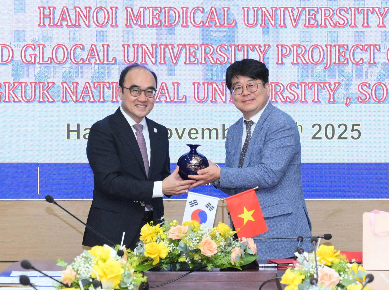 Sáng ngày 13/11/2025, Trường Đại học Y Hà Nội đã đón tiếp và làm việc với Nhóm dự án Glocal University – Đại học Quốc gia Gyeongkuk (Hàn Quốc), đồng thời ký chứng kiến Lễ ký kết Biên bản Thỏa thuận Hợp tác (AOC) nhằm thúc đẩy hợp tác trong đào tạo, nghiên cứu khoa học và phát triển nguồn nhân lực y tế chất lượng cao giữa đơn vị đối tác và Viện Đào tạo YHDP và YTCC, Trường Đại học Y Hà Nội.