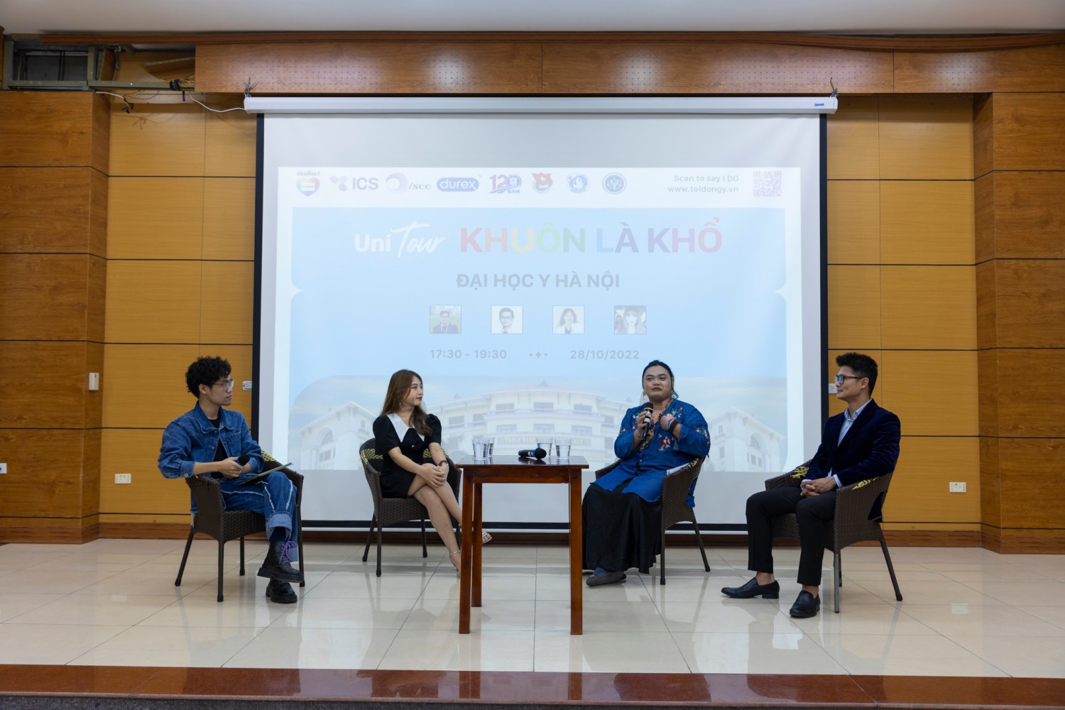 Toạ đàm Unitour “Khuôn là khổ” thuộc chiến dịch truyền thông “Tôi đồng ý” vừa qua đã ghé thăm Trường Đại học Y Hà Nội. Chương trình đã diễn ra vào ngày 28/10 tại giảng đường nhà B với chủ đề vô cùng thú vị “Khuôn mẫu giới trong hệ thống y tế tại Việt Nam”. Các bạn sinh viên tham gia toạ đàm đã được giao lưu và lắng nghe những chia sẻ từ các diễn giả:
