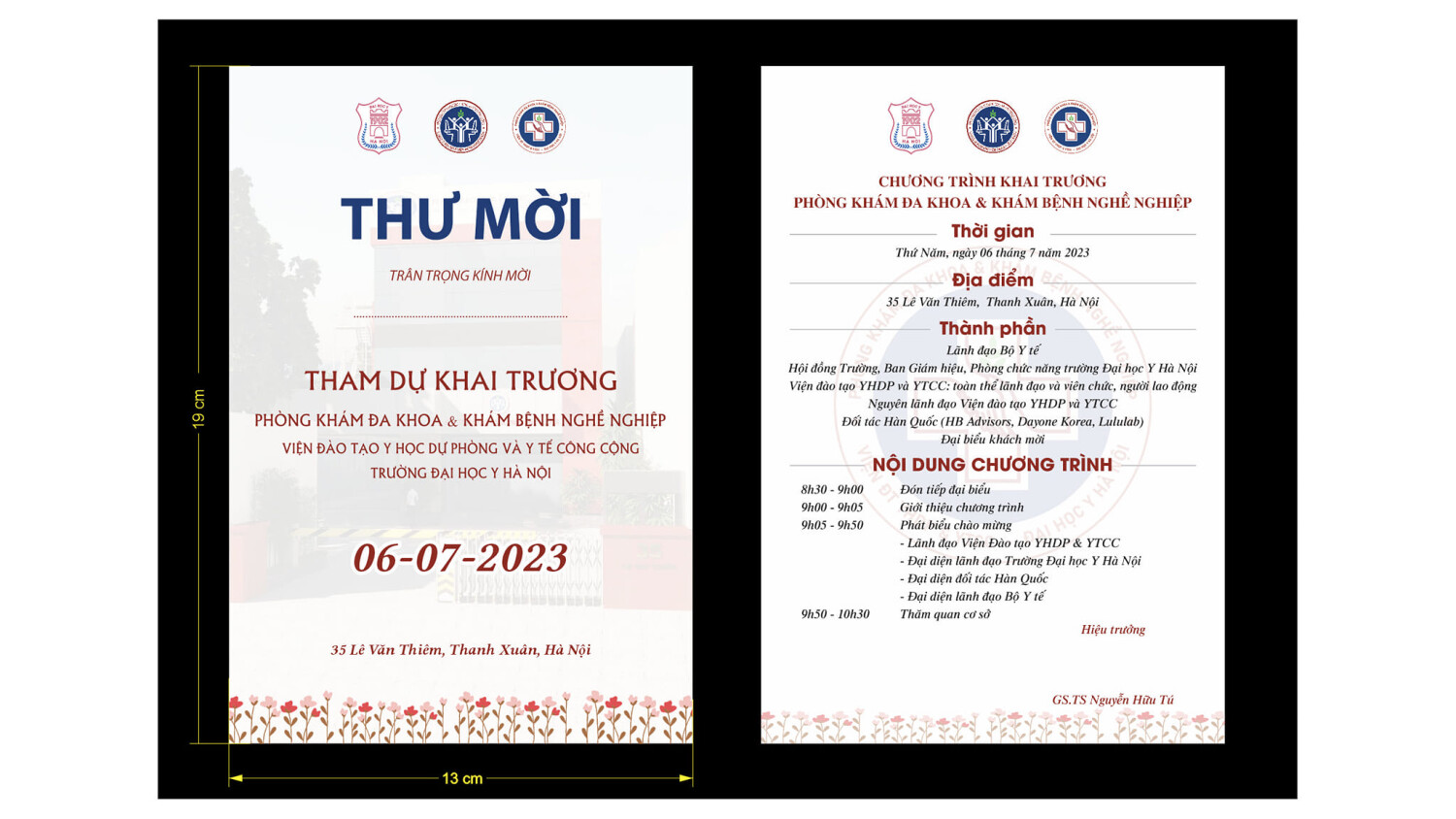 Viện Đào tạo YHDP & YTCC - Trường Đại học Y Hà Nội xin trân trọng thông báo chương trình "Khai trương Phòng khám đa khoa & khám bệnh nghề nghiệp" sẽ diễn ra vào ngày 6/7/2023 tại 35 Lê Văn Thiêm, Thanh Xuân, Hà Nội.