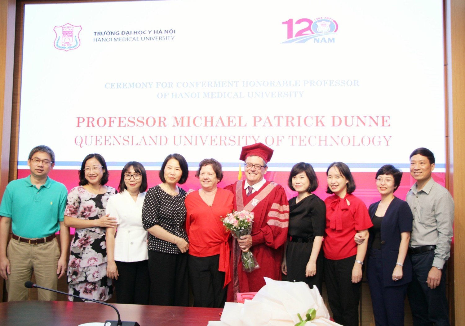 Chiều ngày 9/9/2022, tại hội trường nhà A2, trường Đại học Y Hà Nội đã diễn ra Lễ phong tặng Giáo sư danh dự cho GS. Michael Patrick Dunne của Trường Đại học Công nghệ Queensland, Australia.