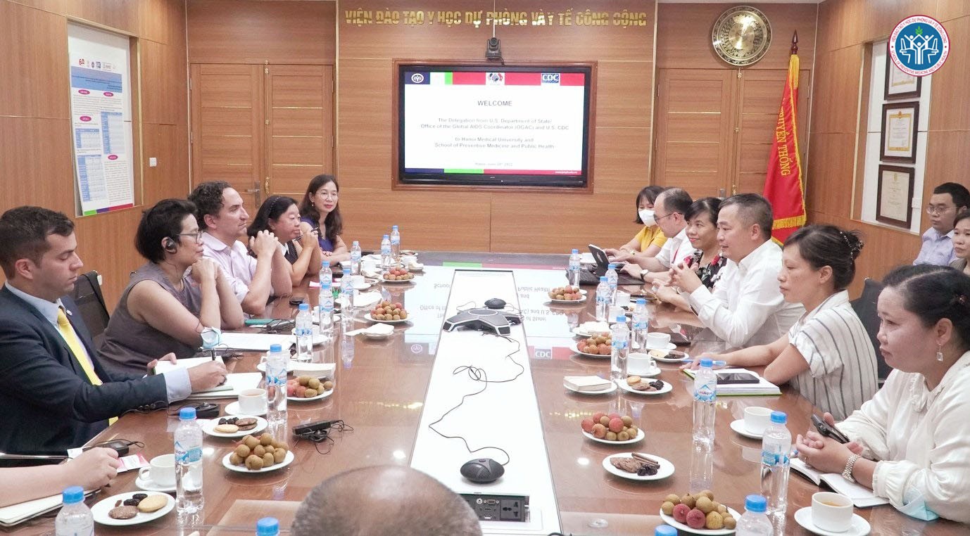 Ngày 28.6.2022, GS.TS. Lê Thị Hương - Viện trưởng Viện Đào tạo Y học dự phòng và Y tế công cộng, đã có buổi tiếp đón và làm việc với Đoàn công tác cấp cao của Văn phòng Điều phối Chương trình AIDS toàn cầu (SGAC) và Trung tâm Dự phòng và Kiểm soát bệnh tật Hoa Kỳ tại Việt Nam (CDC Hoa Kỳ).